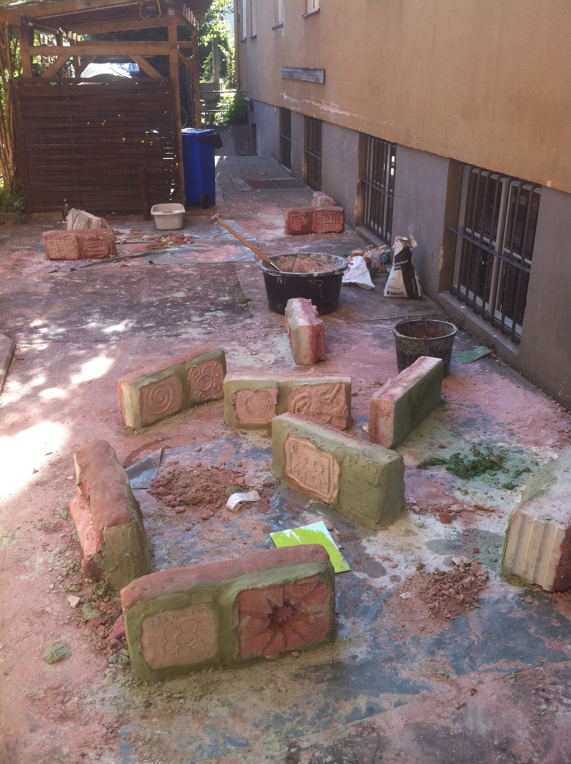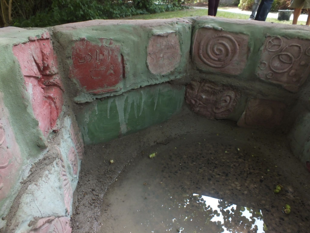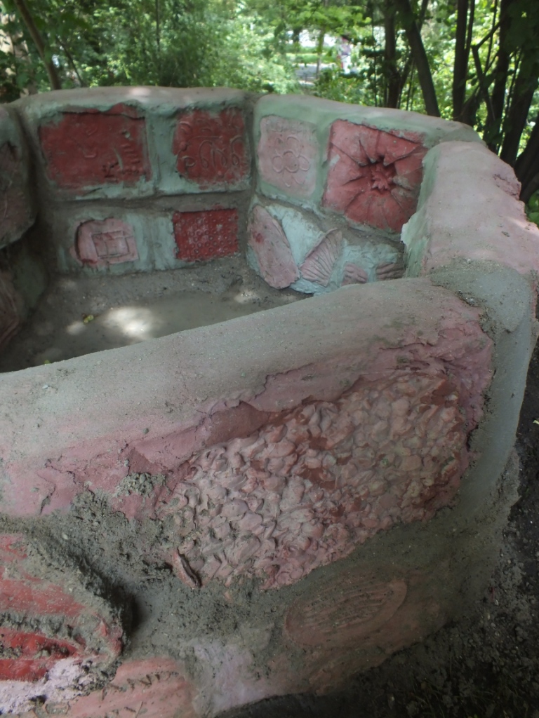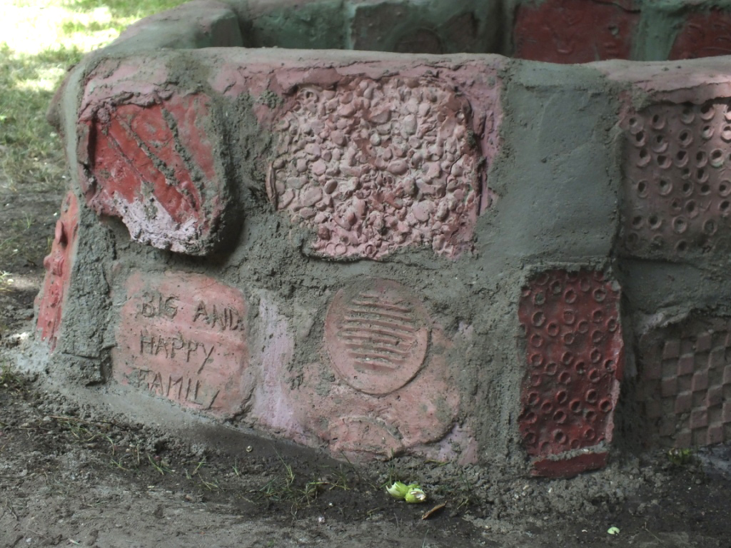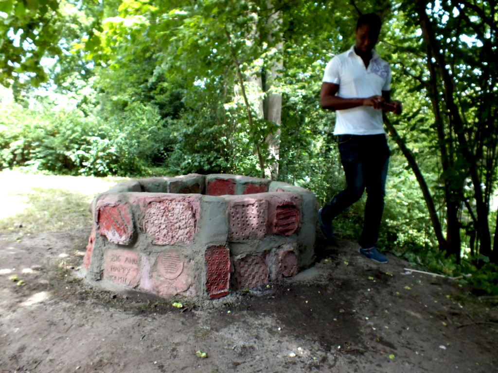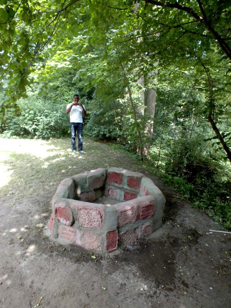 I was invited to create a project with refugees in Augsburg, Germany. I invited the refugees and the local germans to create 2 clay slabs. The 1st – a copy of a texture around them. The second – to draw or write a wish. Then I turned the slabs into concrete. The exterior of the well – textures, the interior , the wishes. We constructed the sculpture just outside of the old city wall
