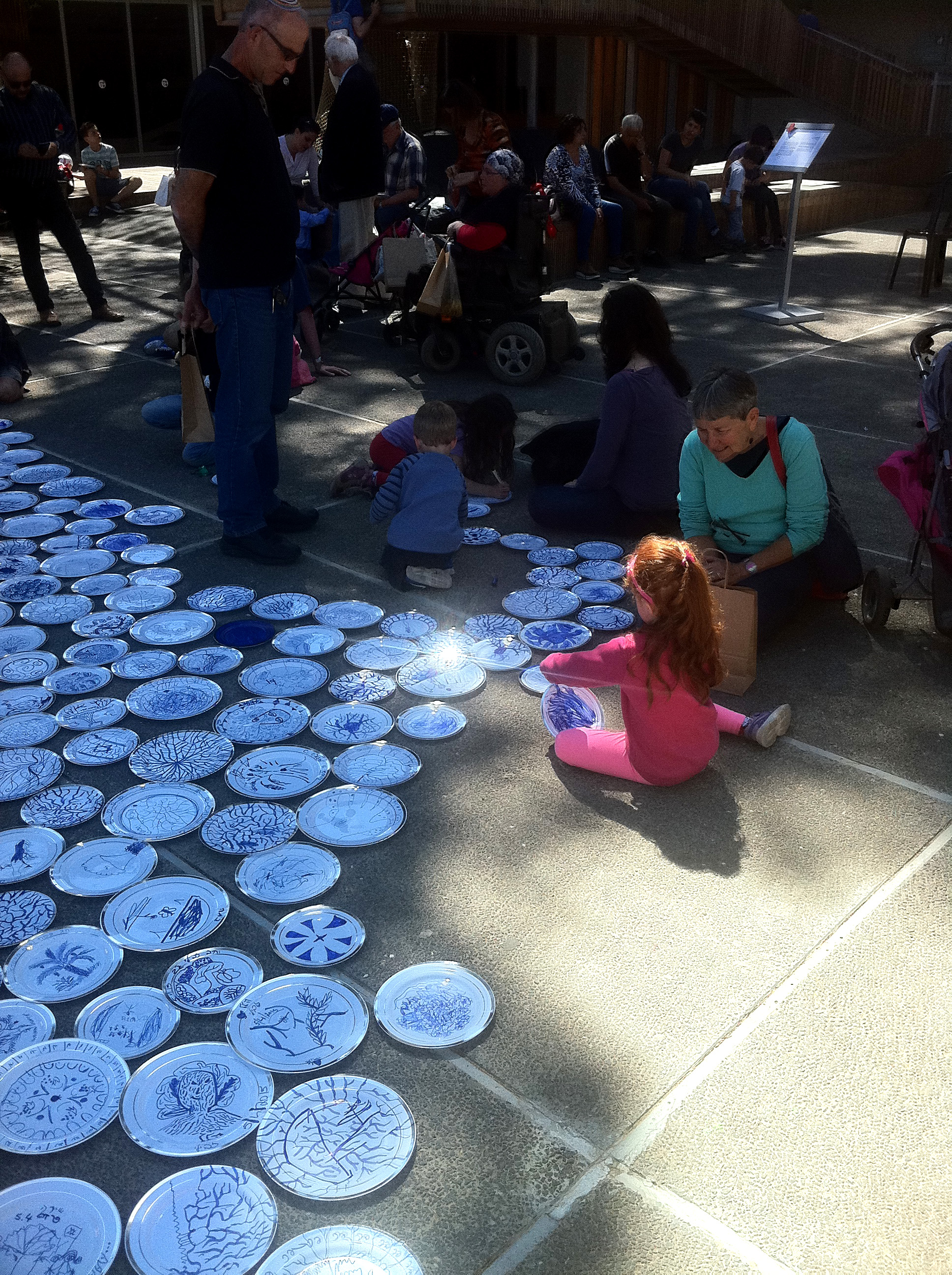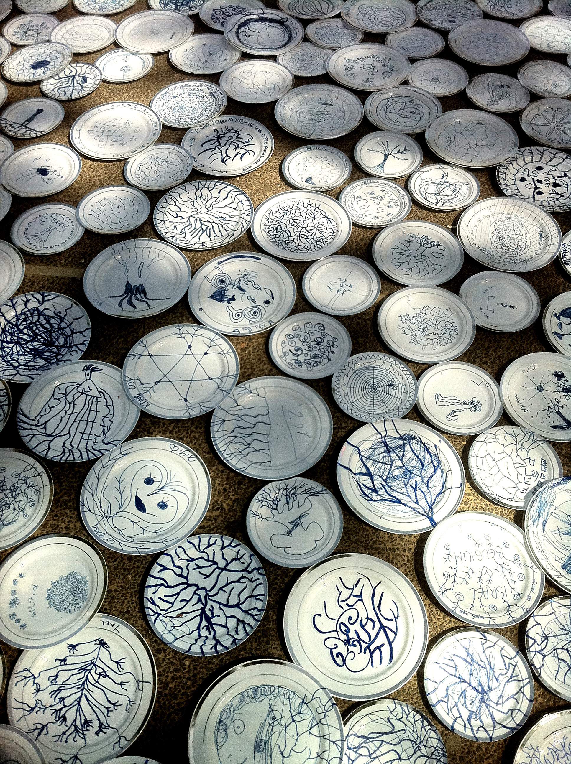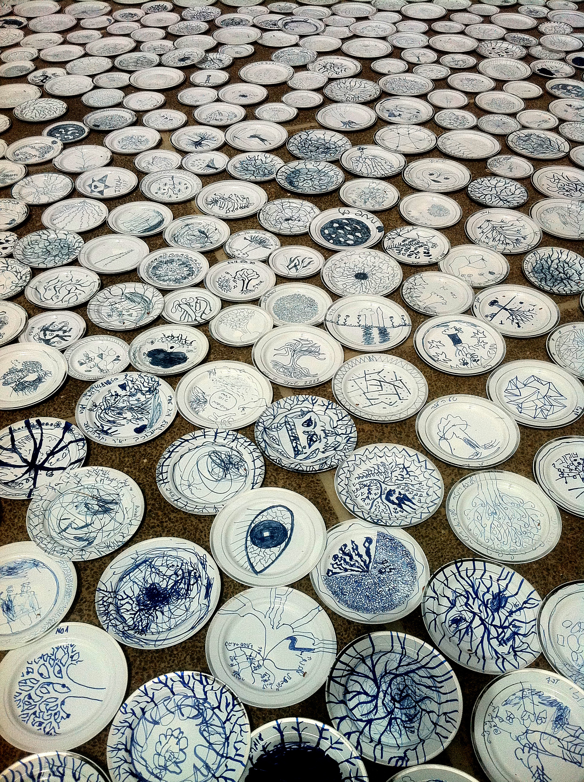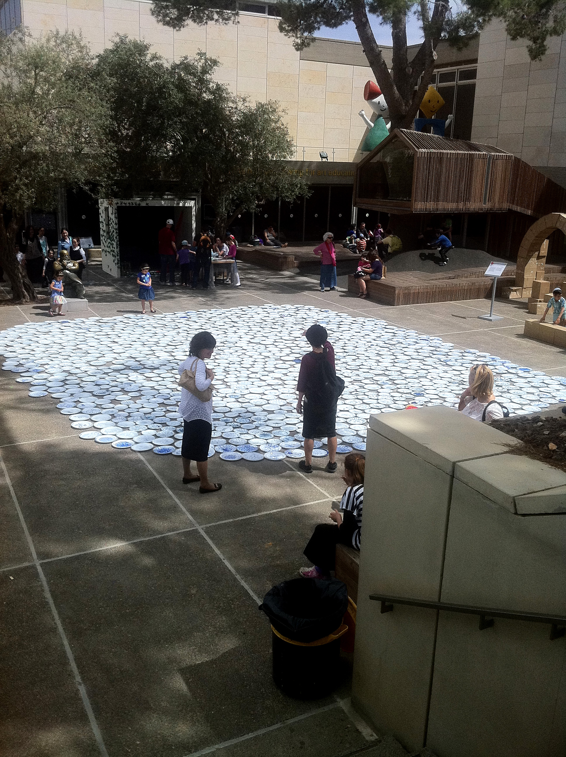 Galia Armeland and myself were invited to create a work at the youth department at the Israel museum. We drew patterns of roots on several plastic plates and then, during 4 days many participants drew their own roots. Gradually a field of plates was created. The work relates to the tension between “home” and “wandering”