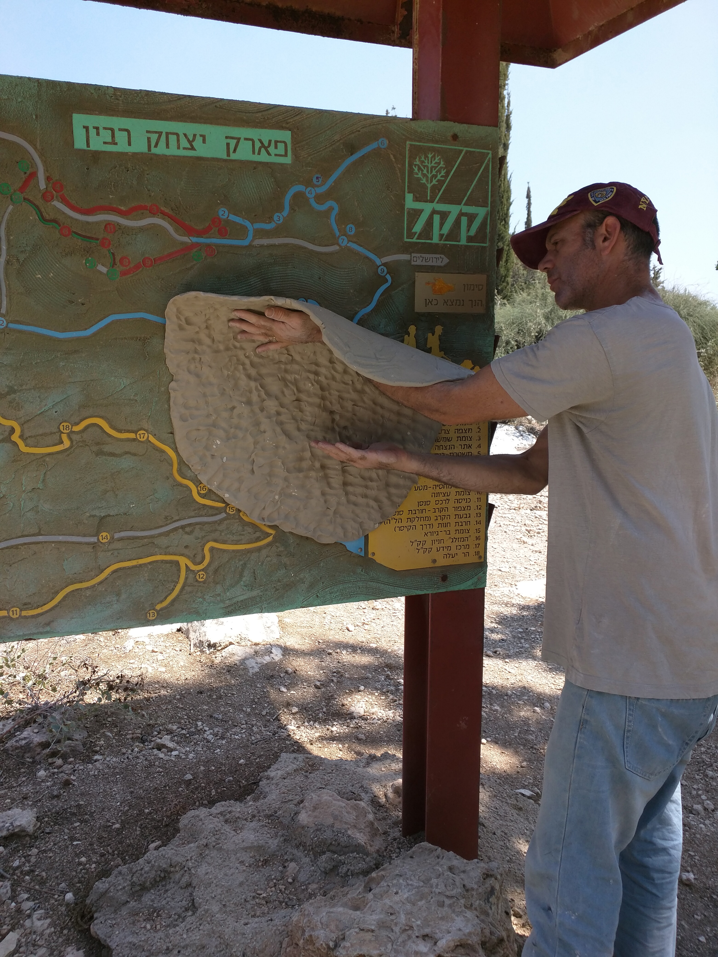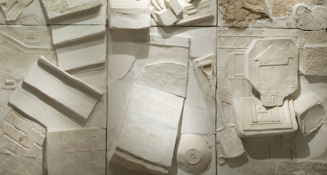 The viewers stand in front of the large relief and at first glance see a white abstract, then they start seeing all the details, gradually decoding the objects to realize it is a subjective mirror of Israel in 2015.