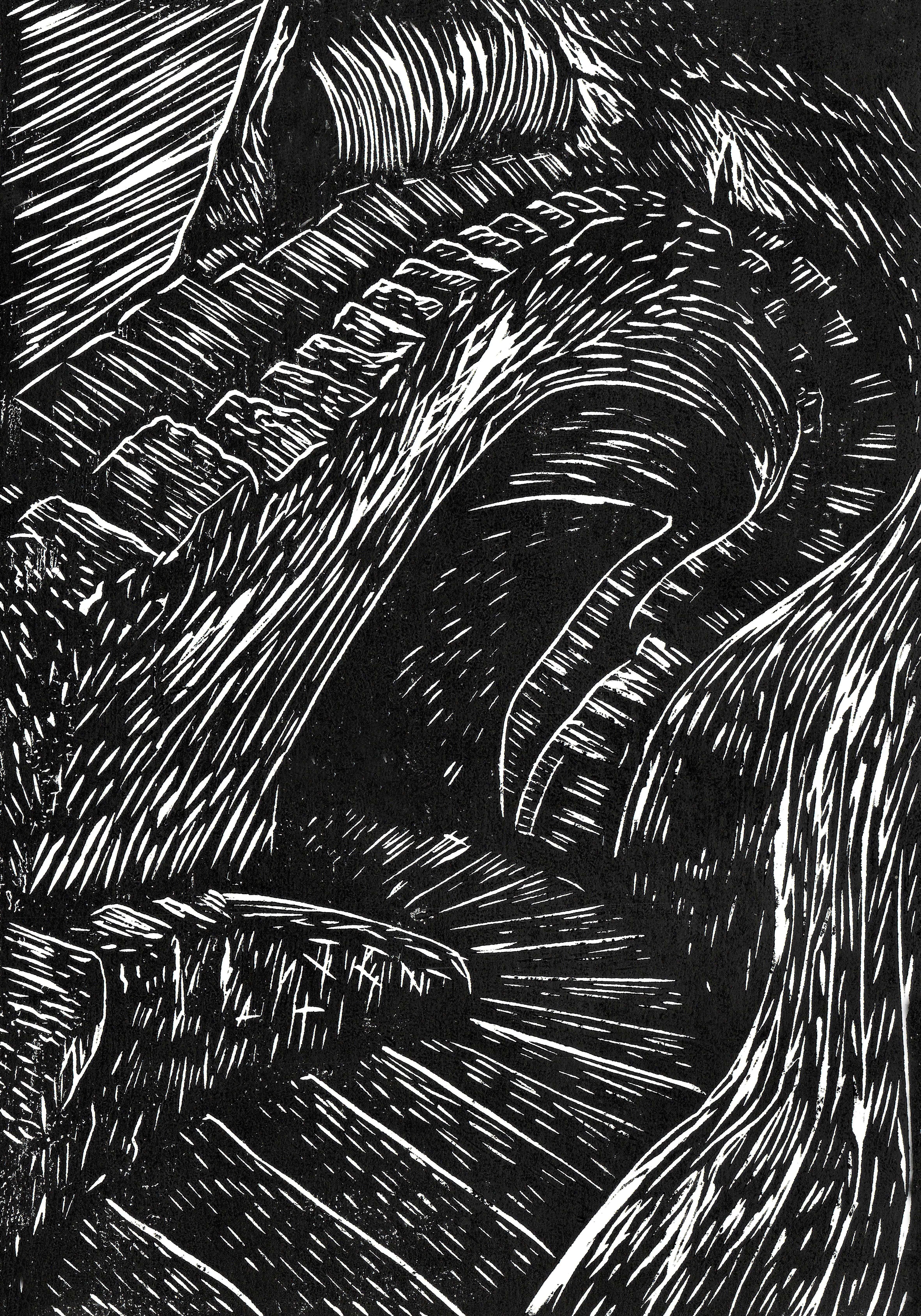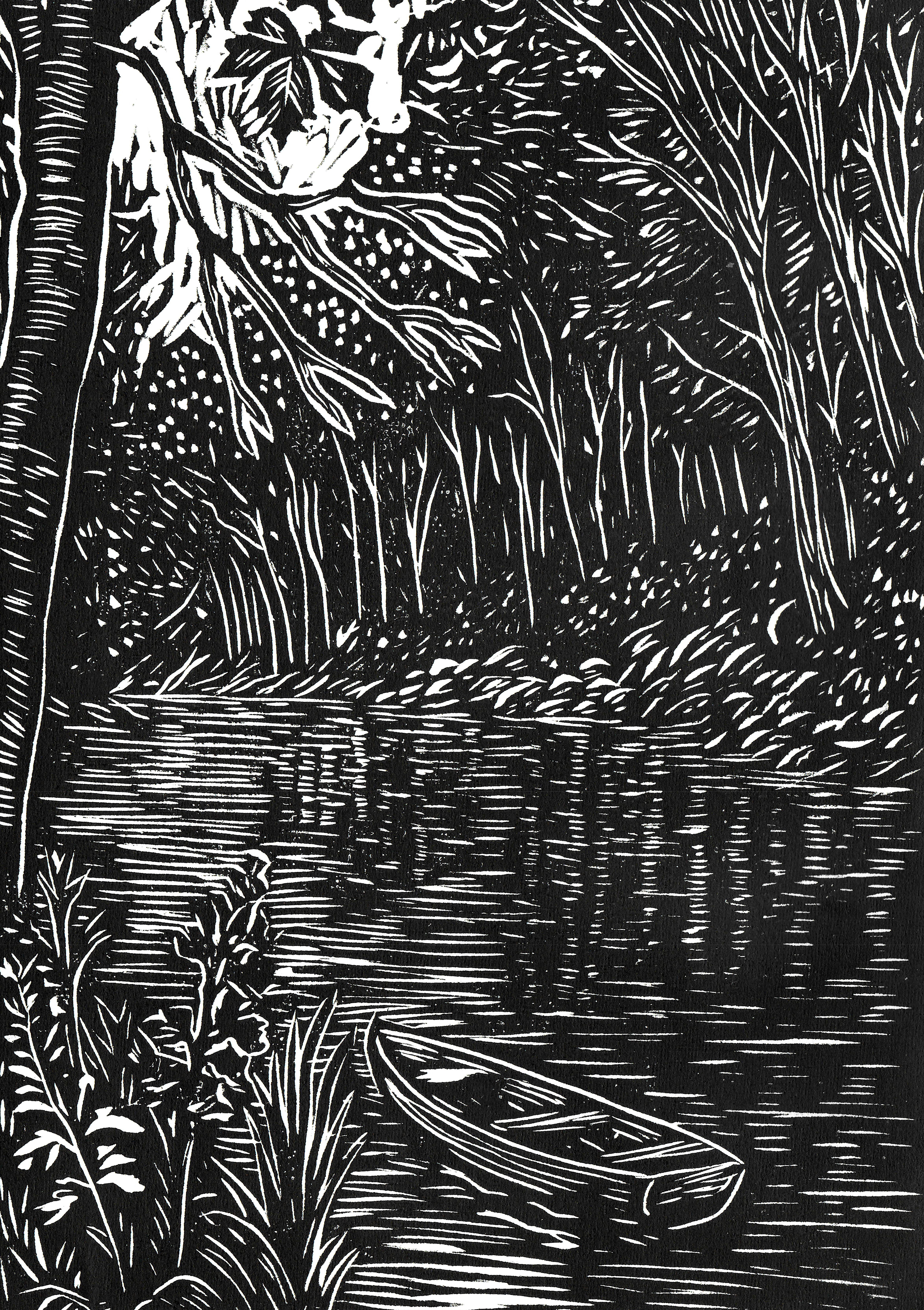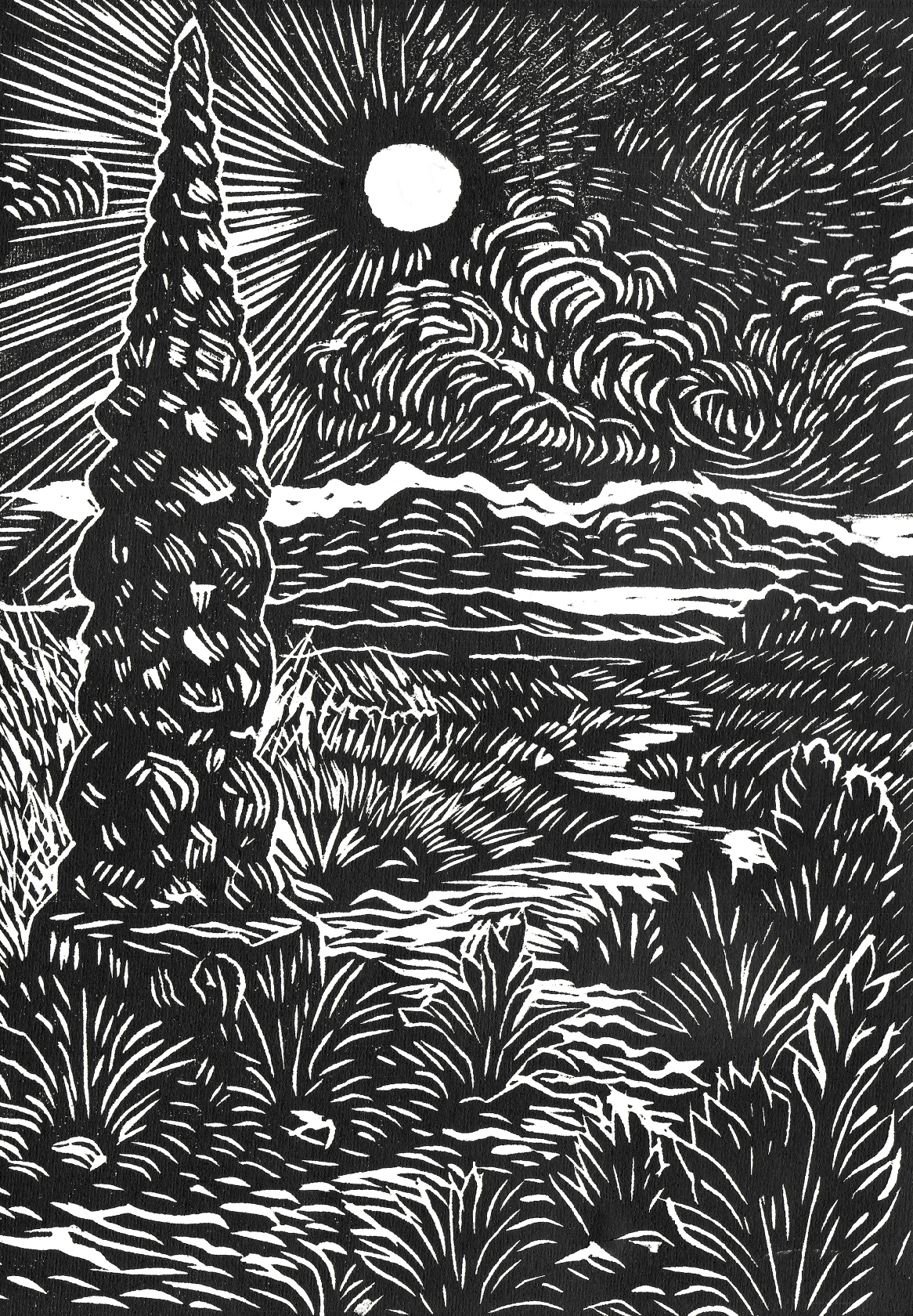 The Lino prints are 29cm X 21cm. They are all part of a book in progress, 2005