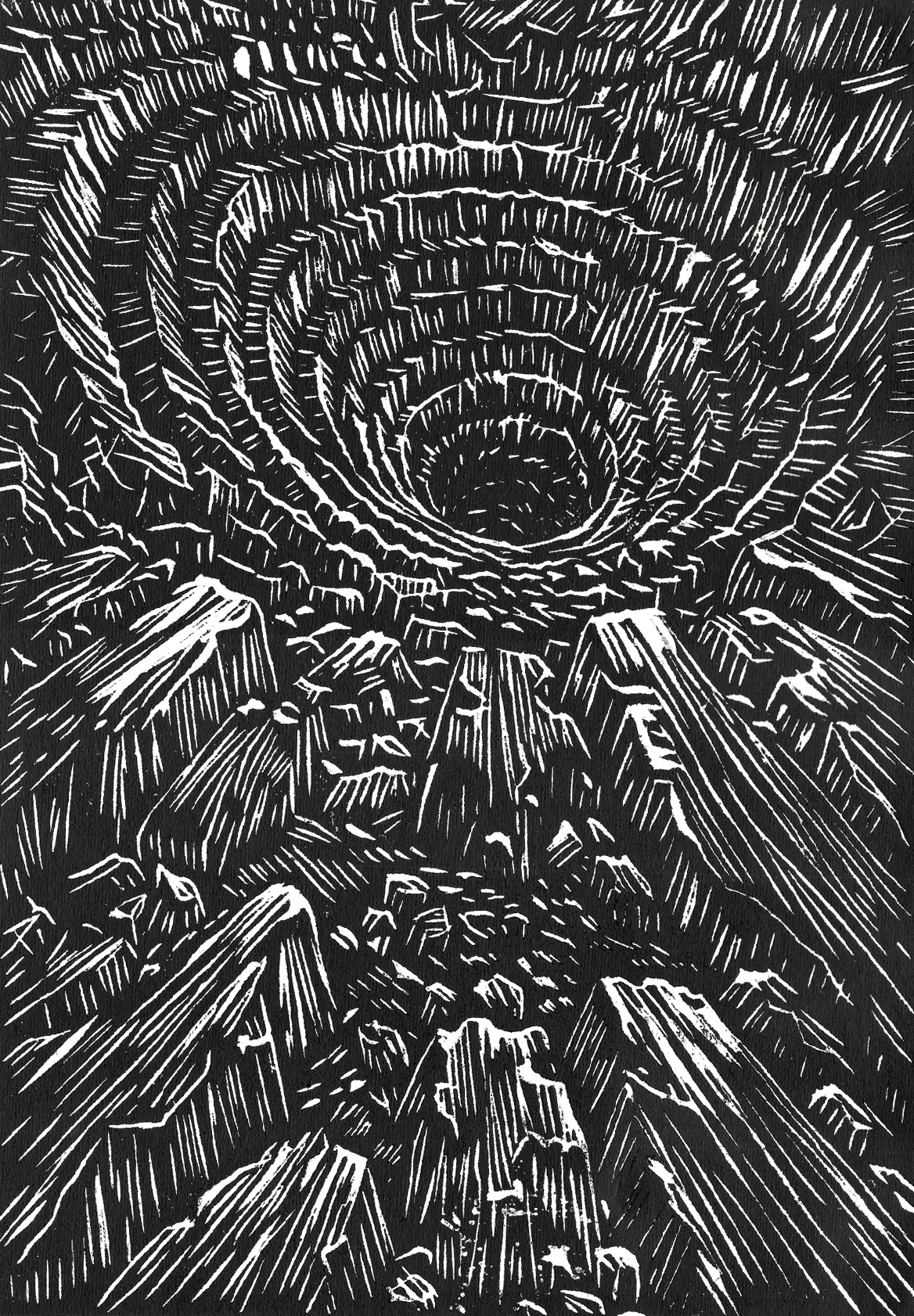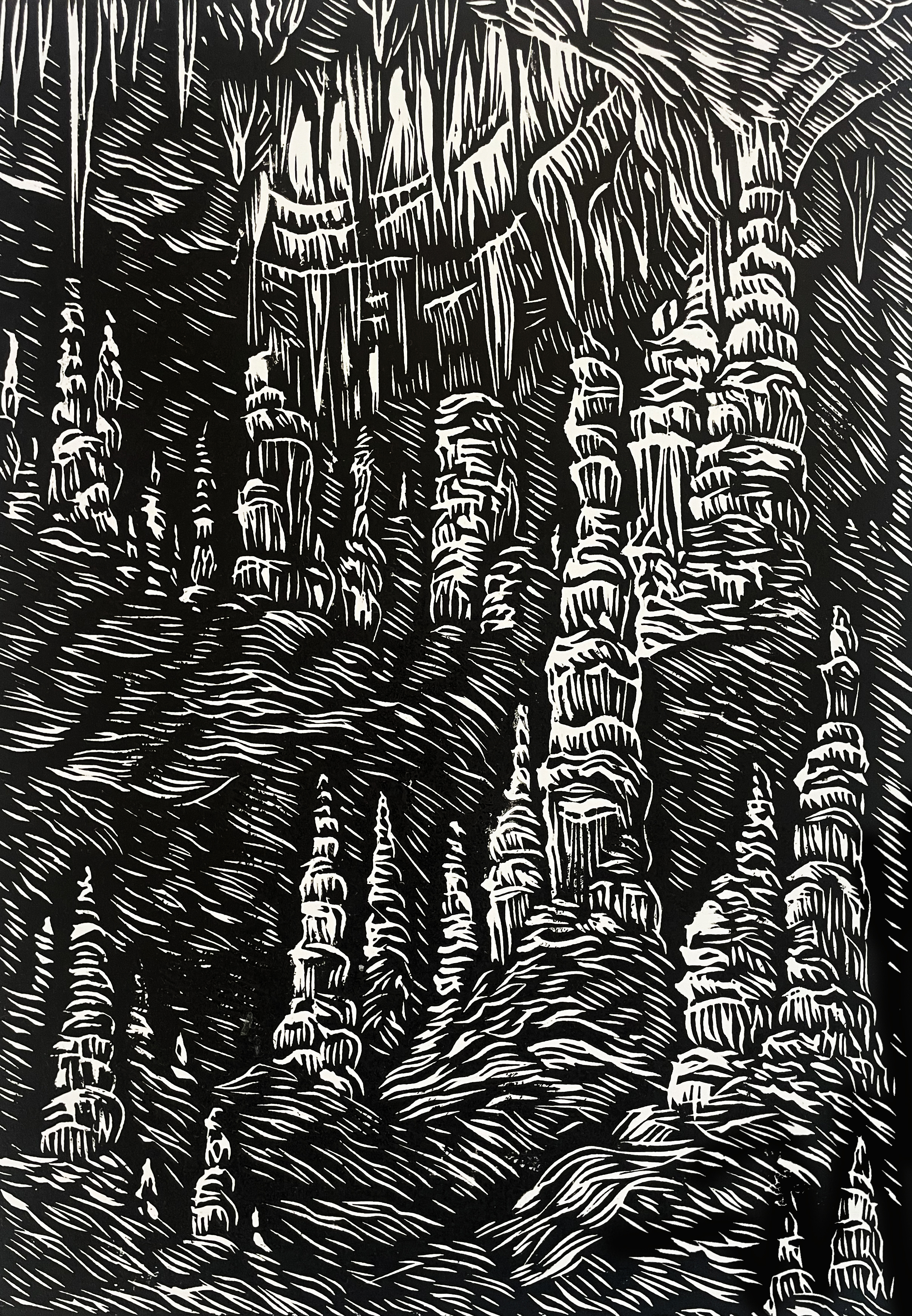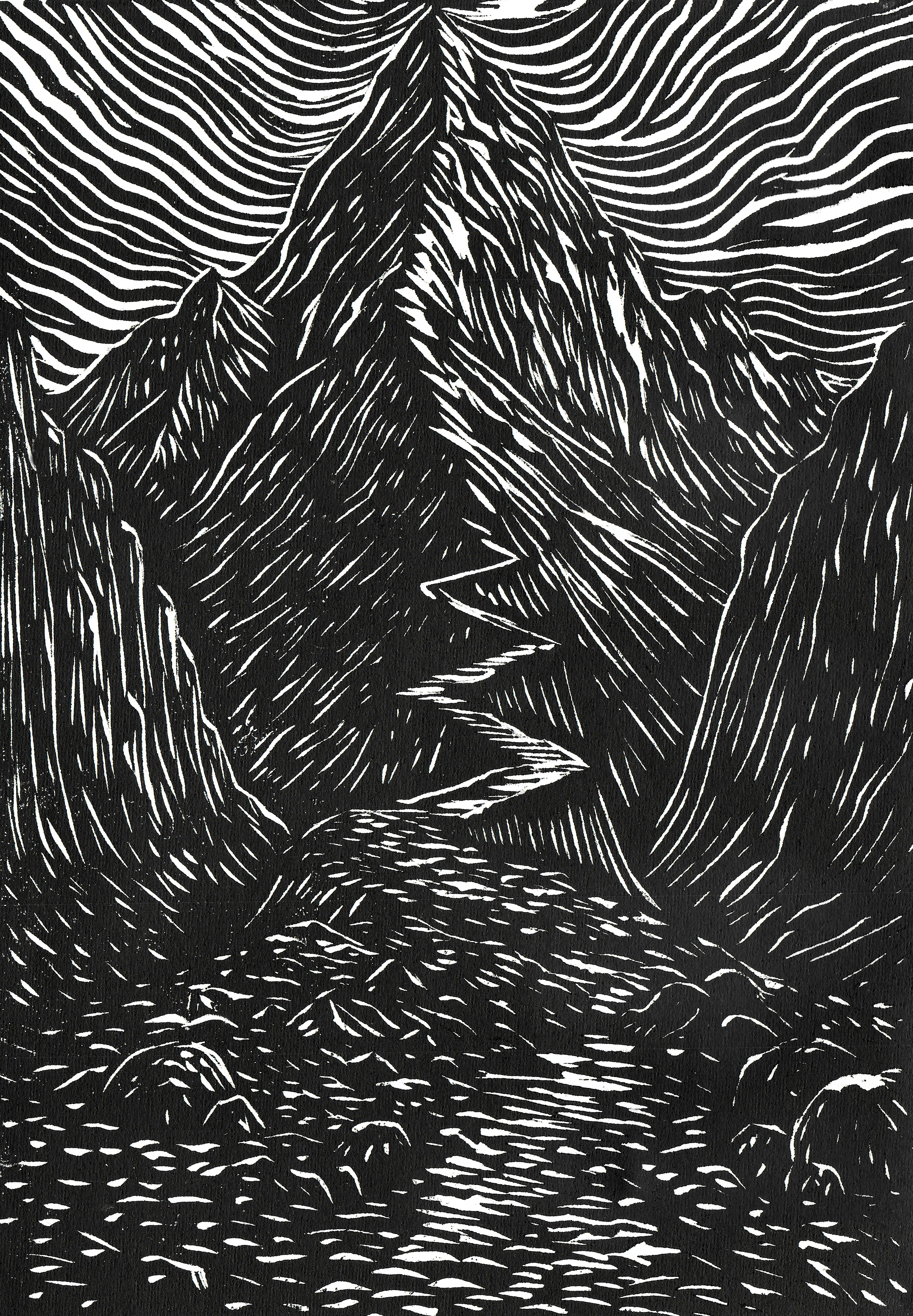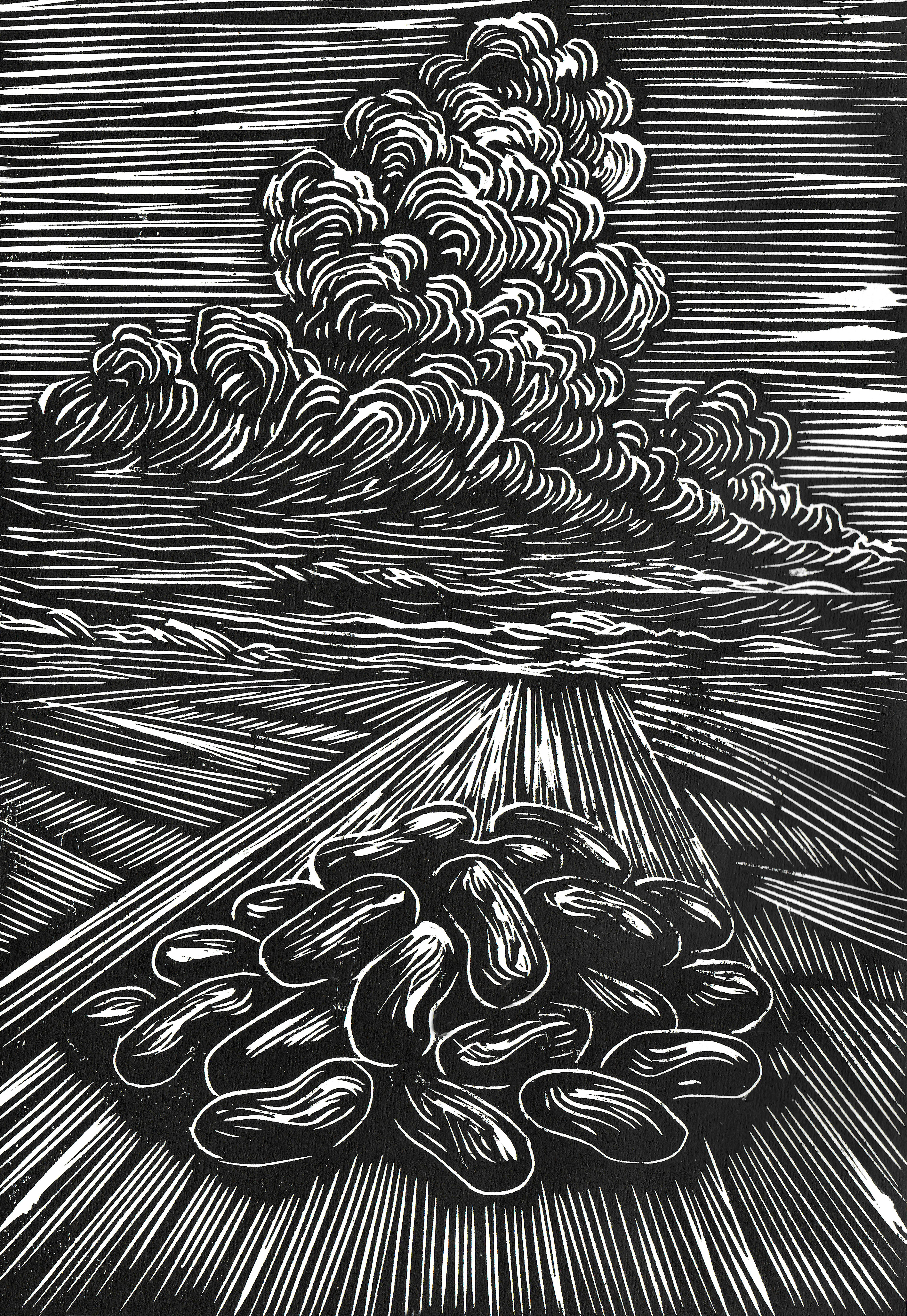 The Lino prints are 29cm X 21cm. They are all part of a book in progress, 2005