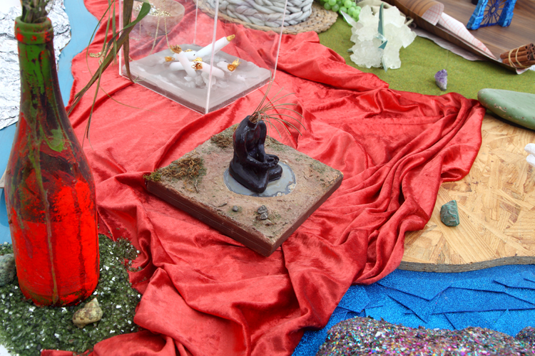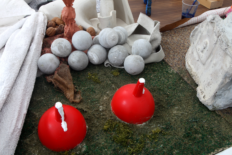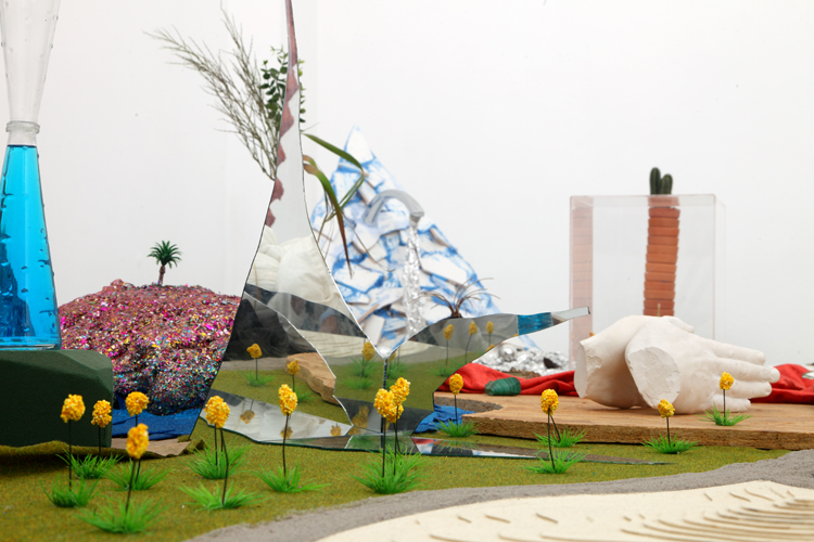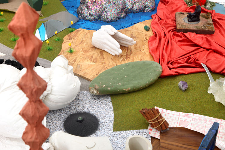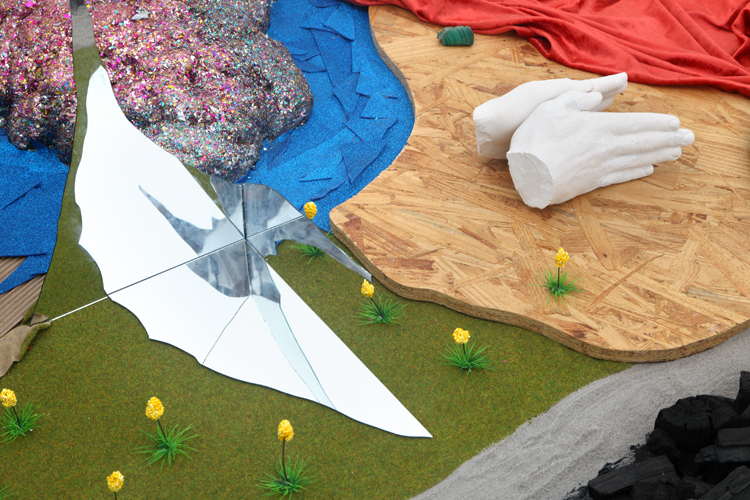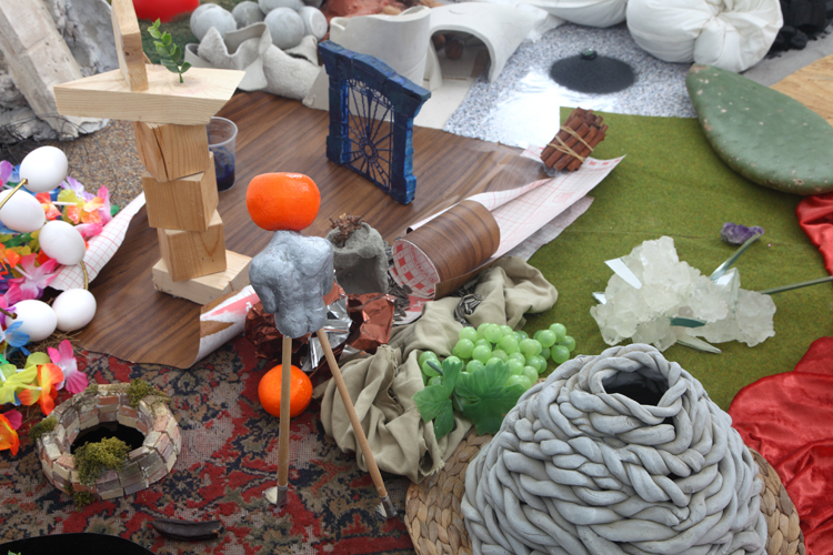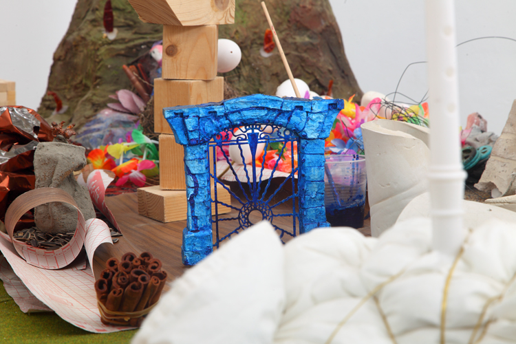 Nature Quest is a sculpture ( 244cm x 244cm x 160cm) that consists of many materials and techniques. It is a sculptural – allegorical world where playfulness and pleasure are the main motivators.