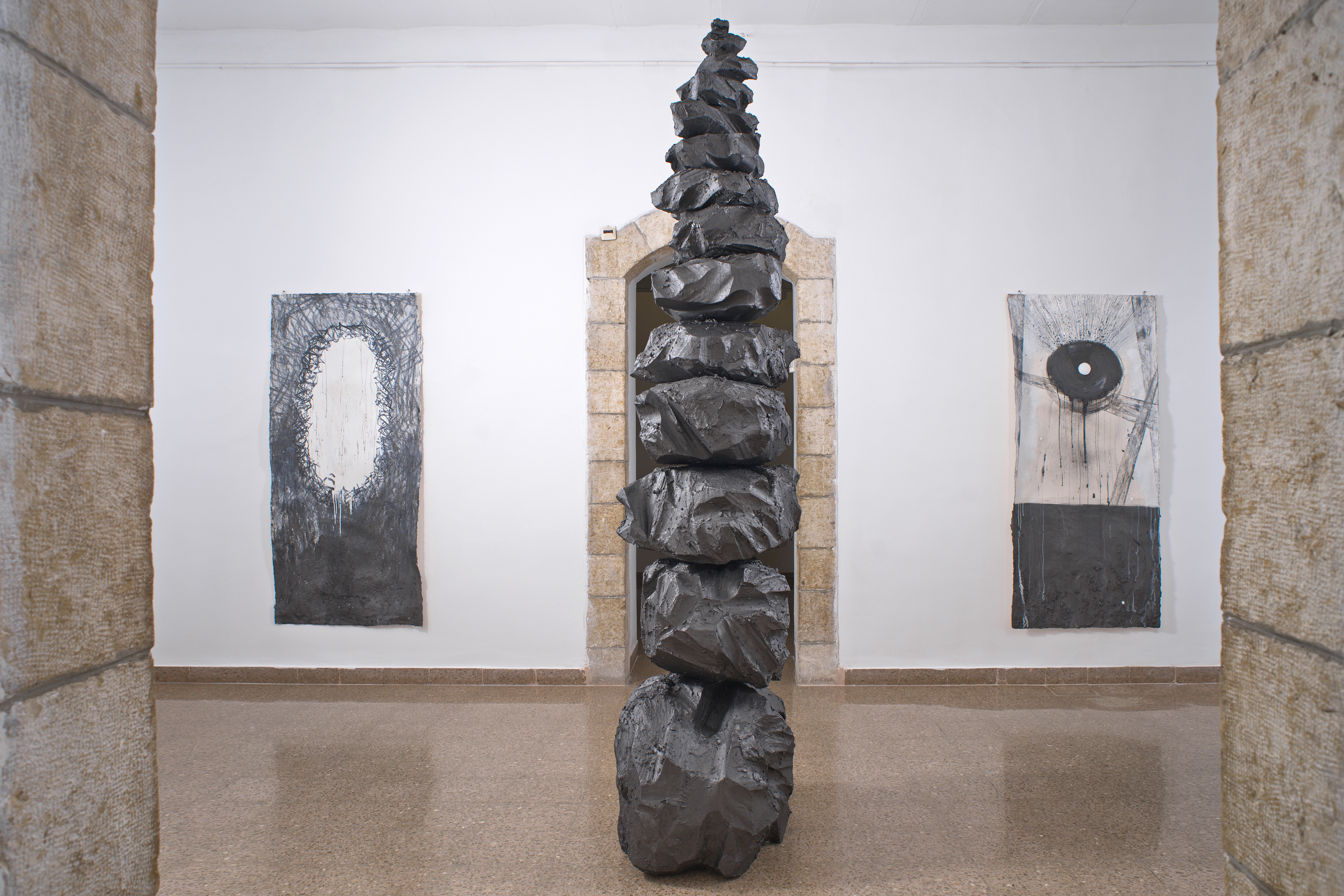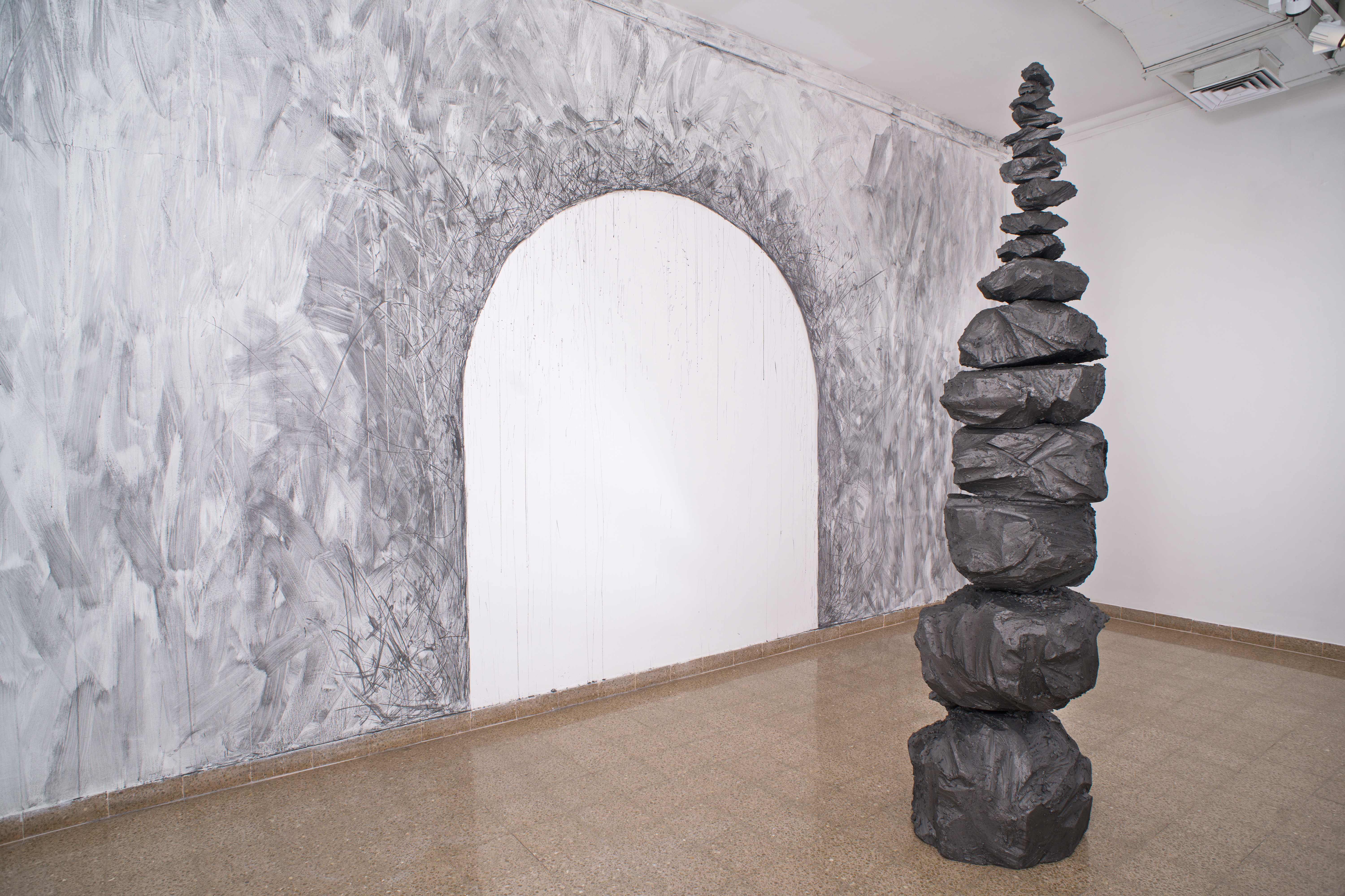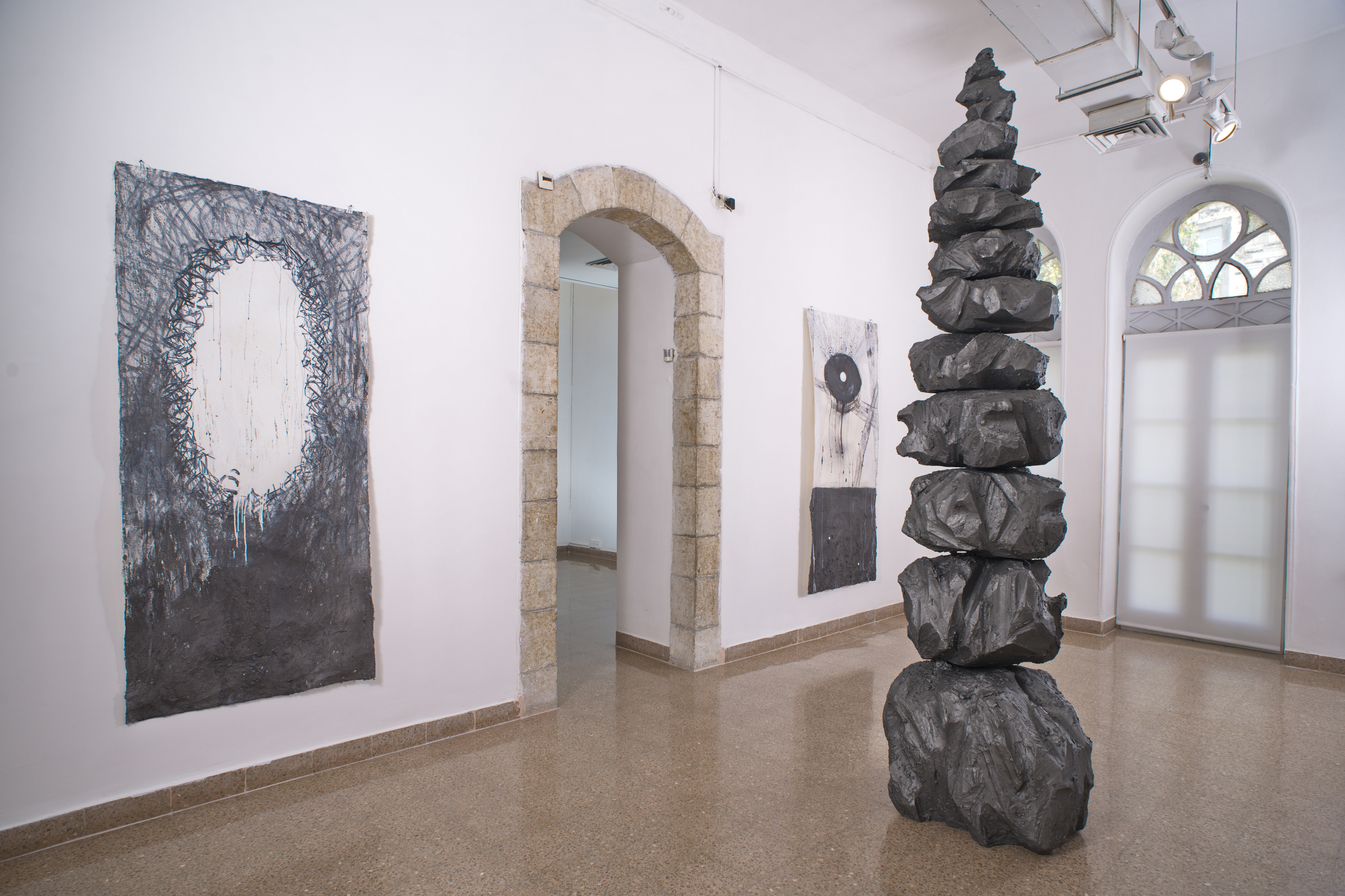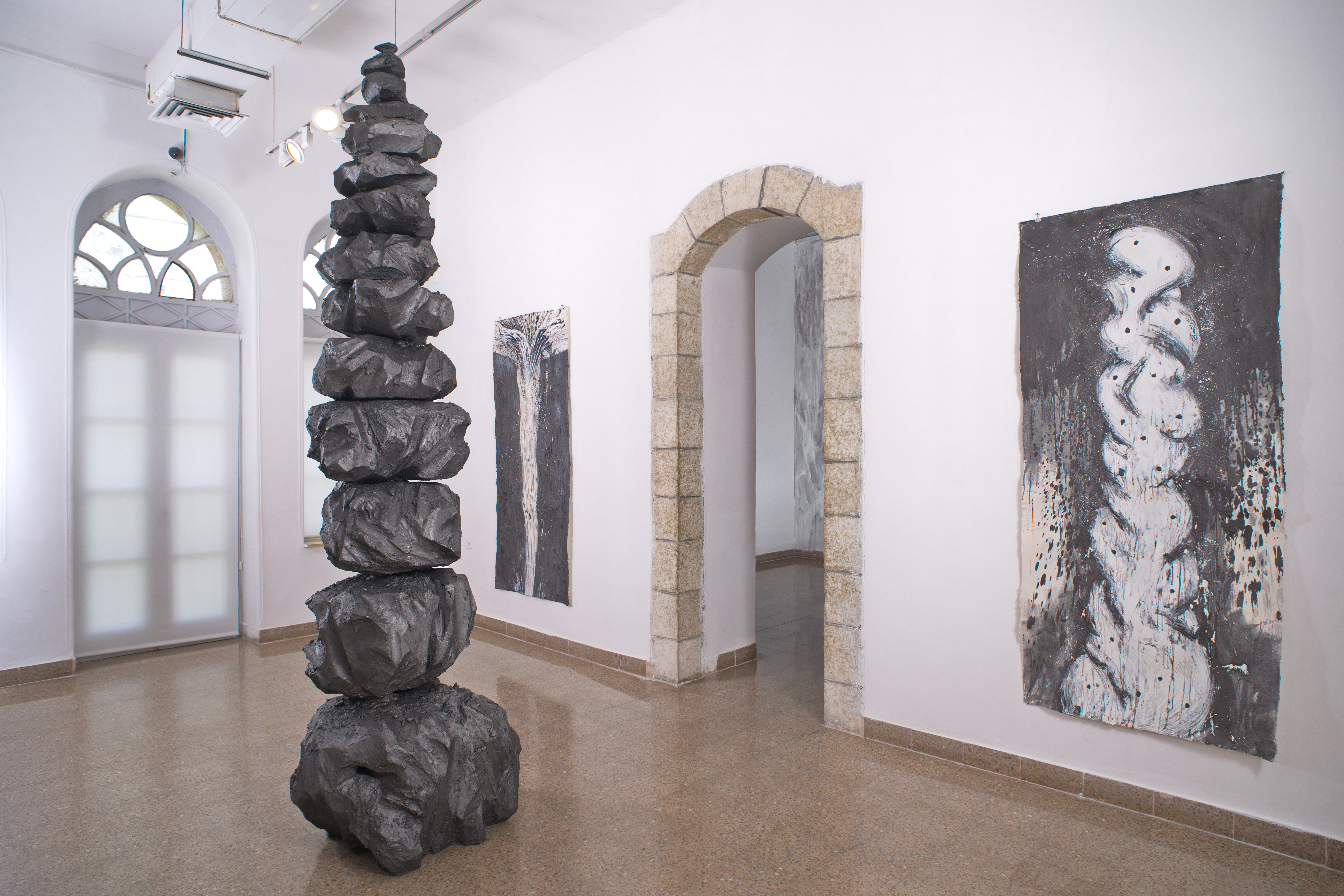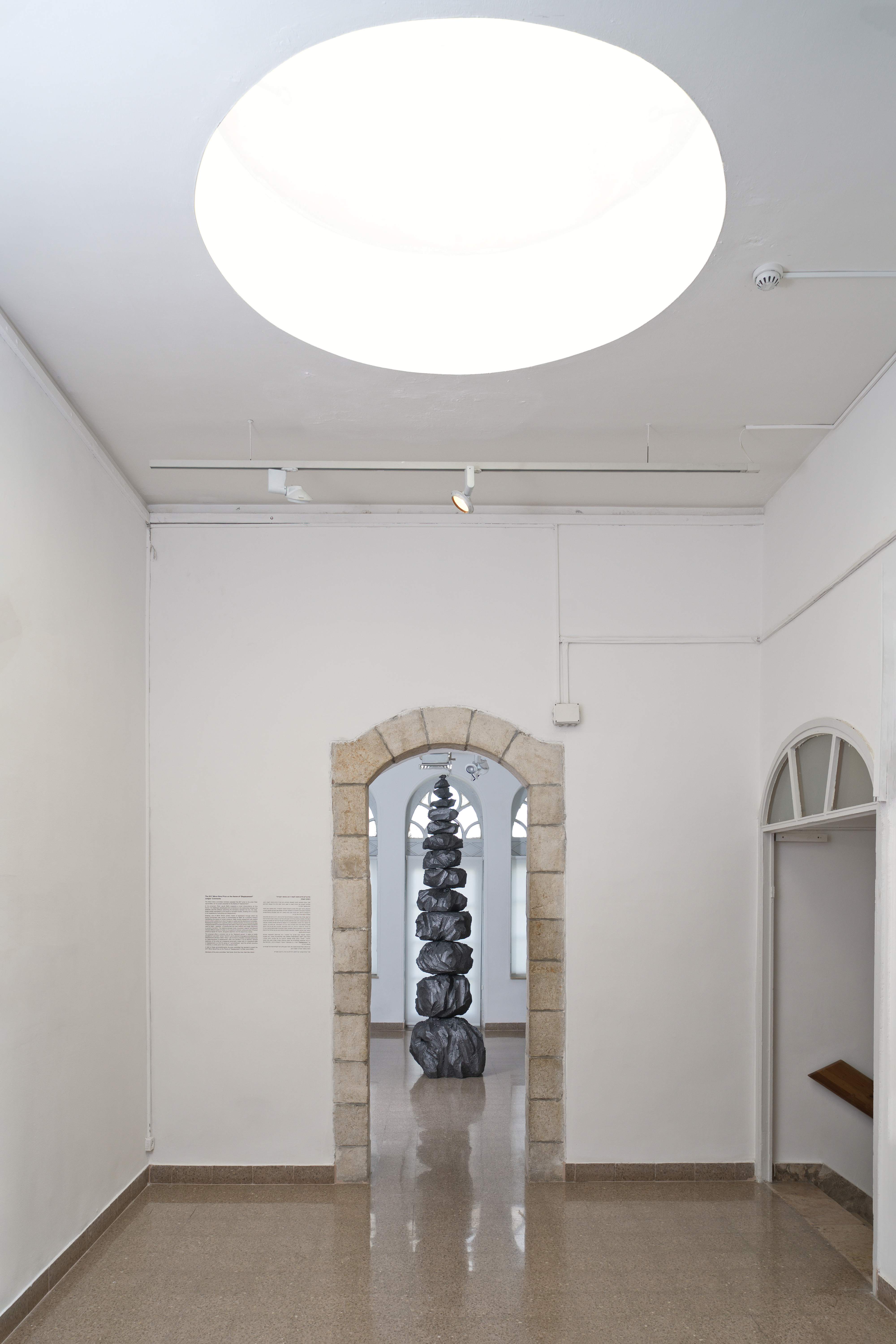 A walk through the exhibition reveals a collection of observations, flashes of conscious thought, which cracks its shell and reveals its own material, creating a monochromatic and ascetic, perhaps religious, landscape. All along, Maltz maintains a tension between the control of the raw materials and the possibility of allowing them to lead him. The movement flows from word to drawing, drawing to painting, painting to object and finally from object to sculpture. This journey comes together as sculptural-spatial-pectoral installation, which among other things, seeks to charge the architecture, the arches and gateways, of the Artists' House with meaning and create a spiritual or perhaps romantic connection to the idea of the place, as the historical Bezalel building.